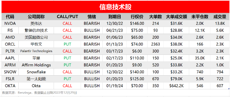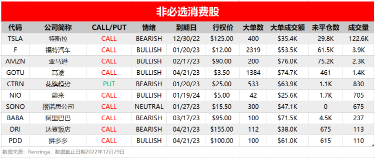 周四(12月29日),非必选消费、信息技术和医疗健康板块相关个股出现较多活跃单,按照当日成交量排行,榜单TOP分别如下: