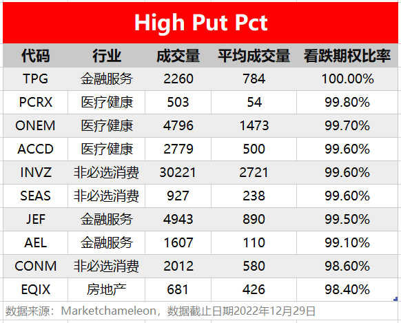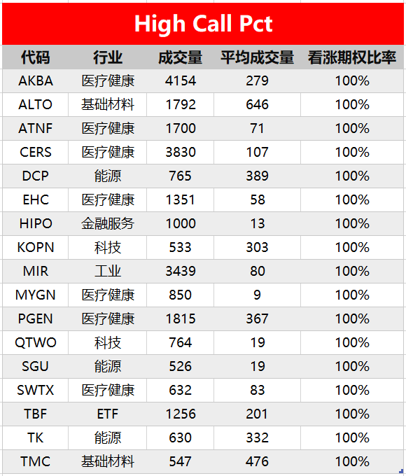 注:High Call Pct/High Put Pct是指相关期权标的当前看涨/看跌比例大小,该比值越高意味着该期权标的看涨/看跌的合约占比越高。