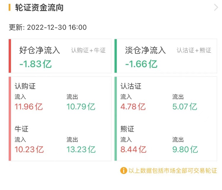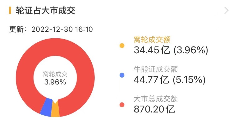 其中,窝轮总成交额为34.45亿港元,牛熊证总成交额为44.77亿港元。