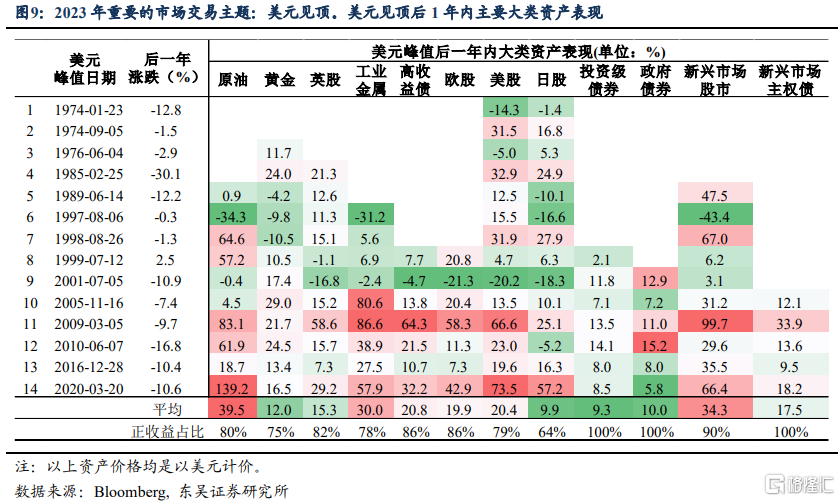 不过,我们在之前的研究中指出,2023年新兴市场经济体的权益资产弹性可能会更大,商品表现难以拿到年度最佳,但我们依旧看好2023年黄金、原油和铜的上涨,其中黄金的确定性高,原油的弹性更足。