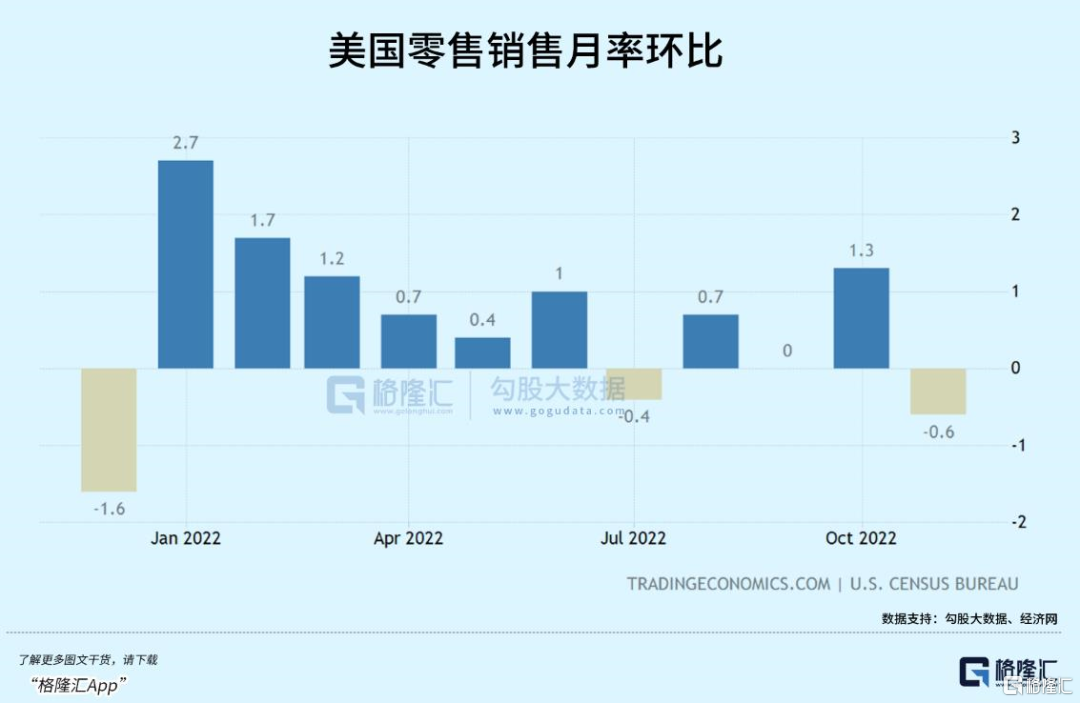 12月,美国消费者信心指数为59.7,较11月小幅上升。但时间维度拉长看,目前消费信心水平与2008年、1970年代大通胀时期的最低点保持在同一水平线上。可见,美国消费零售在2023年存在进一步下行可能,将经济拖入衰退漩涡。