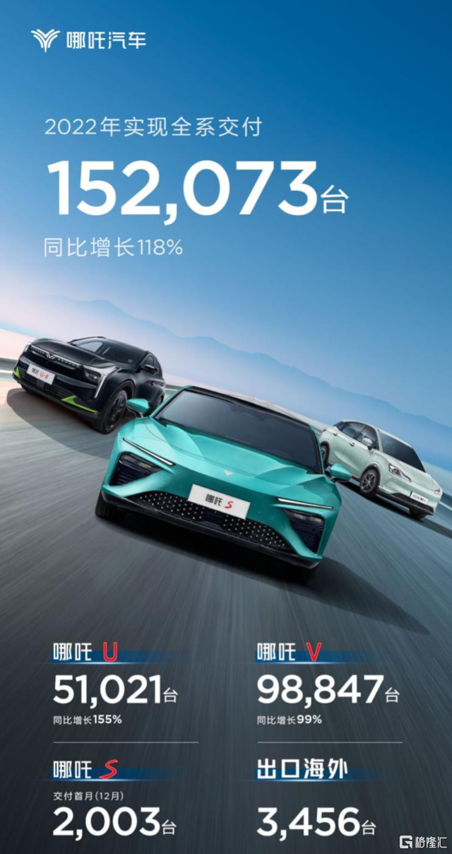 哪吒汽车公布的数据显示,哪吒汽车2022年全年累计销量达152073台,同比增长118%,其中海外交付3456台。结合11月交付数据,哪吒汽车在12月单月交付量为7795台,同比下降23%,环比下降近一半。