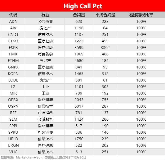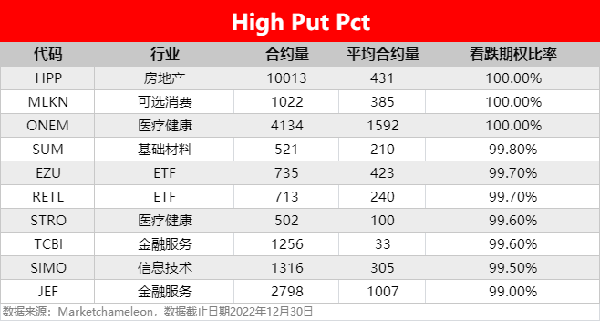 注:High Call Pct/High Put Pct是指相关期权标的当前看涨/看跌比例大小,该比值越高意味着该期权标的看涨/看跌的合约占比越高。