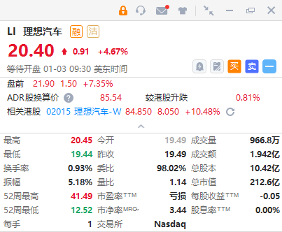 中概造车新势力盘前普涨,理想汽车涨7.35%,小鹏汽车涨6.2%,蔚来汽车涨5.1%。