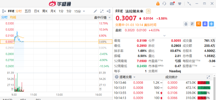 法拉第未来涨3.58%,公司将于1月5日至8日举行的CES(拉斯维加斯消费电子展)上展示FF 91 Futurist,预计在3月底开始量产,并在4月底前交付。