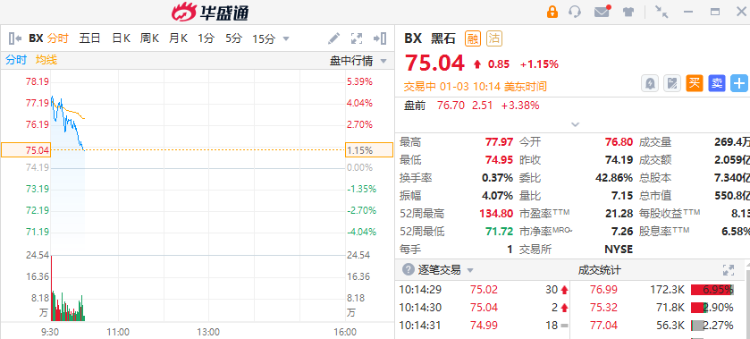 黑石涨1.15%,此前宣布与UC Investments成立战略合资公司,将向房地产基金BREIT投资40亿美元。