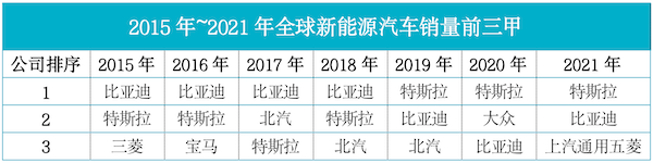 特斯拉被比亚迪夺走2022年全球新能源汽车销冠宝座。