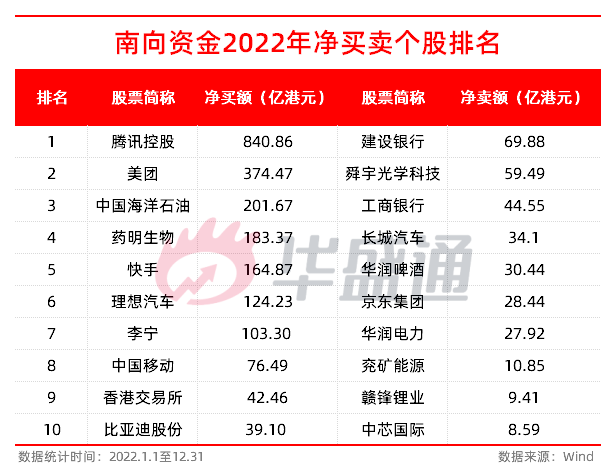 整体来看,南向资金2022全年合计净流入港股市场超3800亿港元,集中流入头部互联网及新能源汽车板块。其中腾讯控股全年被加仓超800亿港元,成为2022年南向资金流入最多的个股。