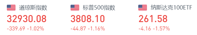 截至周四收盘,道指跌幅为1.02%,报32930.08点;纳指涨幅为1.47%,报10305.24点;标普500指数涨幅为1.16%,报3808.10点。微软 $MSFT 收跌2.96%,特斯拉 $TSLA 收跌2.9%,亚马逊 $AMZN 收跌2.37%;热门中概股方面,爱奇艺 $IQ 收涨超10%,金山云 $KC 涨近9%,新东方教育 $EDU 涨超5%,拼多多 $PDD 涨近5%。