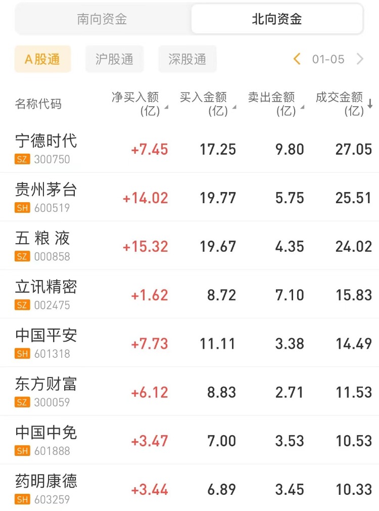 北向资金净买入榜