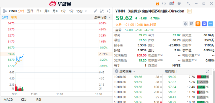 ETF方面,3倍做多富时中国50指数-Direxion跌1.78%,2倍做多沪深中国互联网指数ETF-Direxion跌1.03%。