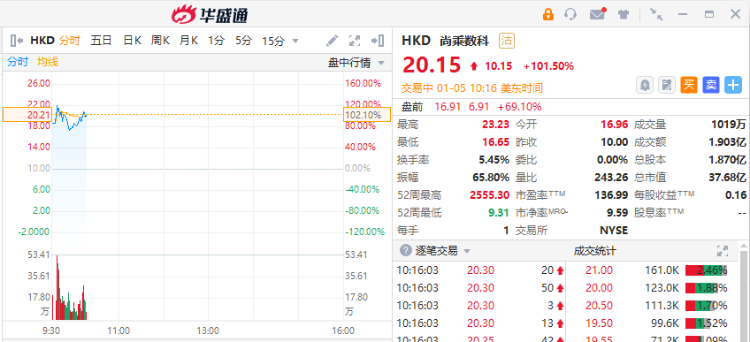 华盛资讯1月5日消息,美股盘中,热门中概涨多跌少,截止北京时间23:06,尚乘数科大涨101.50%,荔枝涨超11%,贝壳、爱奇艺涨超5%,唯品会、拼多多涨超2%,瑞幸咖啡、虎牙跟涨。
