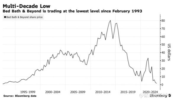 曾红极一时的“WSB概念股”之一、3B家居(BBBY.US)新年遭遇当头一棒,由于该公司正在破产的边缘徘徊,有分析师认为其股价只值10美分。