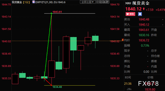 北京时间周五(1月6日)21:30,美国劳工部发布12月非农就业数据走低,薪资年率大幅低于预期值和前值,夯实了美联储进一步放慢加息步伐的前景。截至发稿,现货黄金一度跳升逾8美元至1843.61美元/盎司。