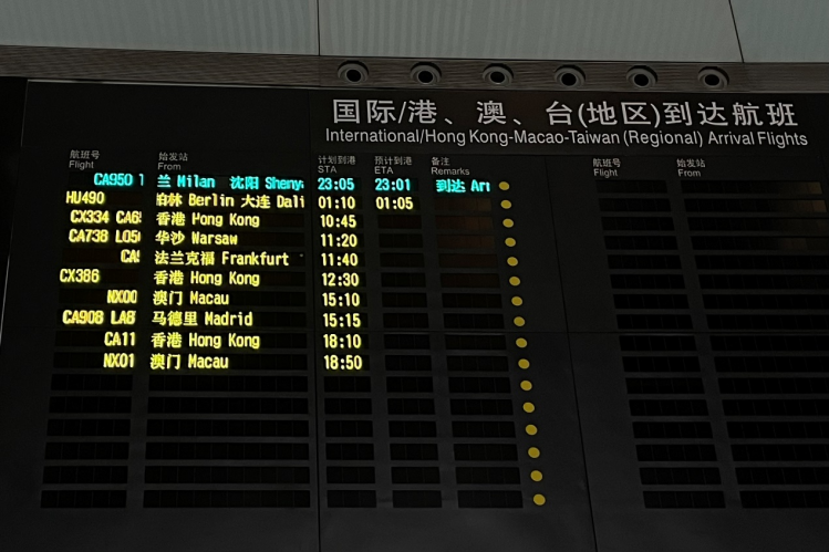 1月8日0时,北京首都机场三号航站楼的入境航班到港信息