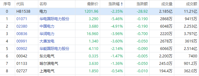 1月9日讯,电力股此前表现强势,今日集体回落。截至发稿,华电国际(01071)跌5.46%;大唐发电(00991)跌3.60%;中国电力(02380)跌4.91%;华润电力(00836)跌3.96%。