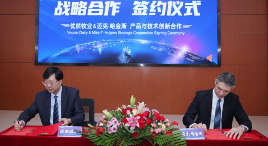 1月8日,优然牧业与全球著名奶业专家、NASEM《奶牛营养需要》编委迈克·哈金斯博士战略合作签约仪式在呼和浩特成功举办,优然牧业执行董事兼总裁袁军与迈克·哈金斯博士代表共同签约。双方将就奶牛营养饲料的新技术、反刍饲料的新产品研发方面进行合作,共同打造国际先进的系统化产品研发创新体系和技术服务体系。