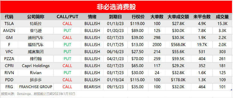 周二(1月10日),非必选消费、信息技术和工业板块相关个股出现较多活跃单,按照当日成交量排行,榜单TOP分别如下: