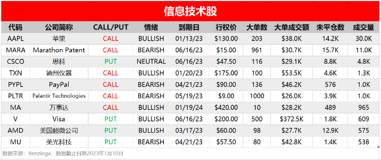 当日榜单TOP:苹果、Marathon Patent、思科、德州仪器、PayPal、Palantir Technologies、万事达、Visa、美国超微公司、美光科技。