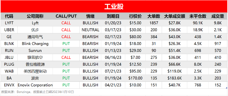 当日榜单TOP:Lyft、优步、通用电气、Blink Charging、Sunrun、捷蓝航空、普拉格能源、美国西屋制动、波音、Enovix Corporation。