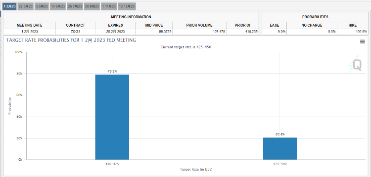 据CME观察最新数据,美联储预计将在2月议息会议上加息25个基点的概率为79.2%,加息50个基点的概率为20.8%。