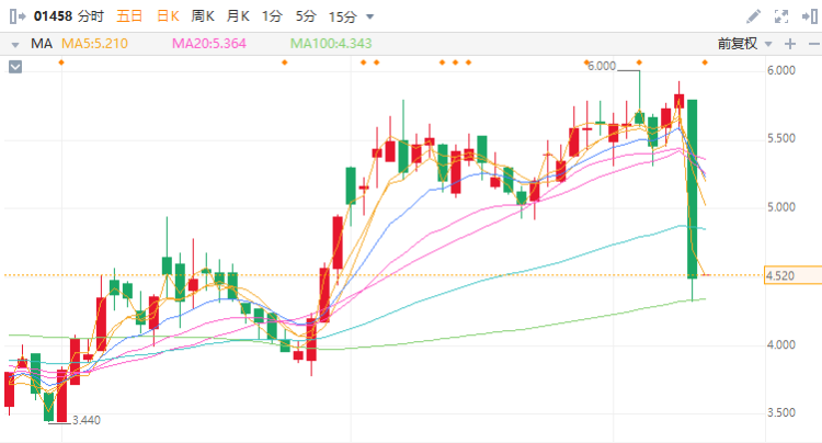 好端端的周黑鸭,其股价在11日上午突然“跳水”,盘中一度跌26%。截至11日收盘周黑鸭报4.5港元,跌幅22.95%,总市值107亿港元。市值一天蒸发约32亿港元(约28亿人民币)。
