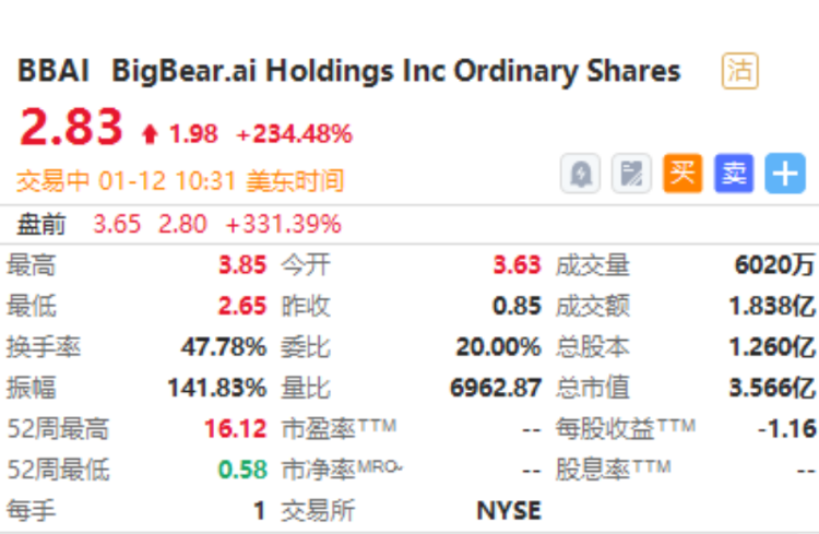 BigBear.ai $BBAI 暴涨超230%,该公司周四表示,收获了一份9亿美元的合同。