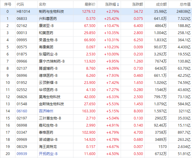 华盛资讯1月13日消息,今日,港股生物医药股再度走强,医疗耗材、医院、制药个股涨幅居前,恒生医疗ETF(513060)强势上扬,涨超3%,成交额超5亿元。港股生物医药板块涨幅扩大,兴科蓉医药涨25%,和黄医药、荣昌生物涨超10%,腾盛博药涨超9%,百济神州、三叶草生物涨逾5%,开拓药业、诺诚健华跟涨。