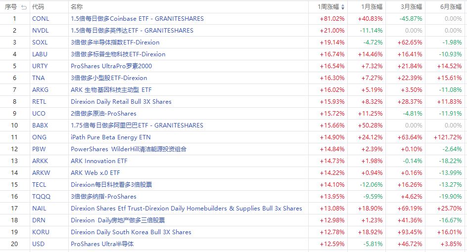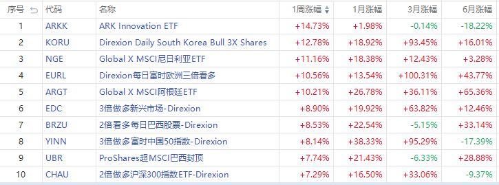 1、本周美股ETF涨幅榜