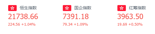 恒生指数上周涨3.56%,报21738.66点;恒生科技指数上周涨2.79%,报4554.78点;国企指数上周涨3.47%,报7391.18点。截至上周五收盘,恒指涨1.04%,报21738.66点;恒生科技指数涨1.09%,报7391.18点。恒生指数主连 $HSImain.HK 夜盘收涨0.36%,报21860点。恒生科技指数主连 $HTImain.HK 夜盘收涨0.02%,报4574点。