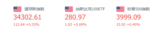 三大股指上周均录得涨幅。道指涨112.64点,涨幅为0.33%,报34302.61点,周累计上涨2%;纳指涨78.05点,涨幅为0.71%,报11079.16点,周累计上涨4.82%;标普500指数涨15.92点,涨幅为0.40%,报3999.09点,周累计上涨2.67%。纳指与标普500指数均创11月以来最大单周涨幅。