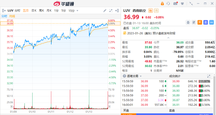 | 西南航空$LUV | 92.1% | 31% | 5.99% | 航空公司 |
