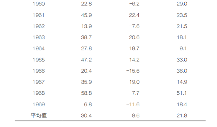 在接下来的13年里,巴菲特合伙公司(Buffett Partnership)取得了非凡的业绩,在不使用杠杆的情况下每年都大幅击败标准普尔指数(见表)。