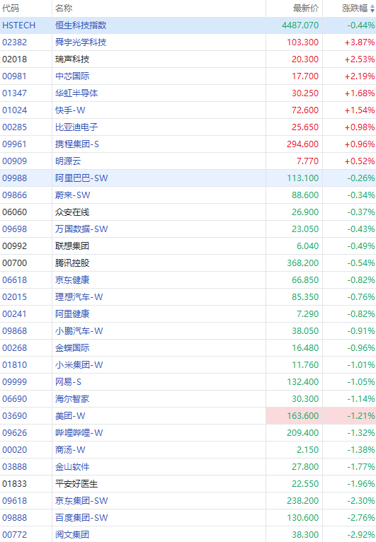 快手-W涨超1%,1月16日正式宣布和中央广播电视总台《2023年春节联欢晚会》达成合作。其他成分股,阅文集团、百度集团-SW、京东集团-SW跌超2%,阿里巴巴-SW、腾讯等轻微下挫。