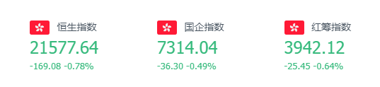 截至周二收盘,恒生指数跌0.78%,报21577.64点;恒生国企指数跌0.49%,报7314.04点;恒生科技指数跌0.14%,报4500.54点,小鹏汽车跌2.34%,商汤跌2.29%,平安好医生跌2.17%。截至1月18日,恒生指数夜期 $HSImain.HK 收报21627点,跌4点或0.018%,高水49点。