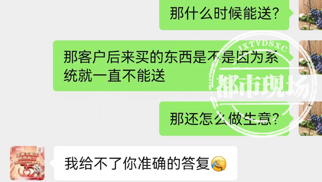 涂女士:销售员给我的理由是系统在维护,不给于送货。后面我又催促她系统好了吗?因为已经过了一个星期了,然后她说系统还在维护。