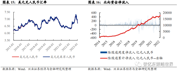 汇率、陆港通等市场都显示了外资流入的迹象。人民币汇率快速升值:11月2日以来,人民币兑美元汇率反弹幅度达到9.5%。外资大幅流入A股:2022年11月11日以来,外资逐渐开始回流A股,截至1月13日,已连续10周净流入。2023年开年以来,外资流入加速,截至1月13日,净流入640亿元人民币,超过11月份的600.95亿元以及12月份的350.13亿元。