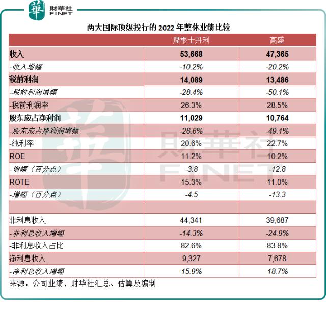 平滑季节影响因素,从2022年全年业绩来看,高盛的盈利能力依然好于摩根士丹利。