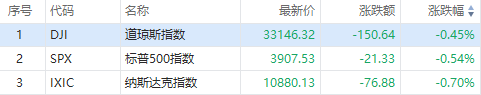 华盛资讯1月19日消息,美股盘初,三大指数悉数走低,截至发稿,道琼斯指数跌0.45%,标普500指数跌0.54%,纳斯达克指数跌0.70%。消息面上,周四联邦债务上限达到后,美国财政部开始使用特别措施来避免美国支付违约。
