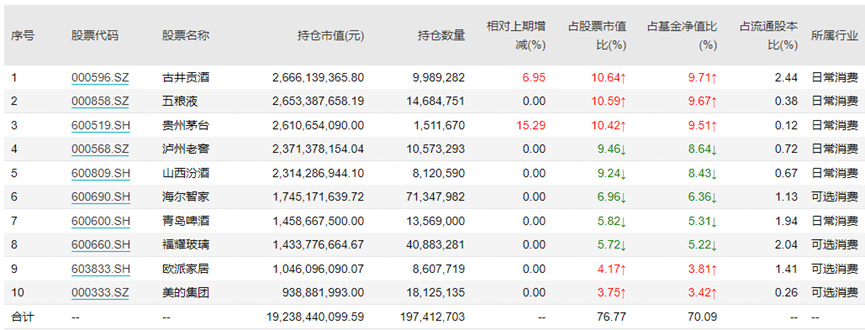 附图:易方达消费基金四季报重仓股(数据来源:wind)