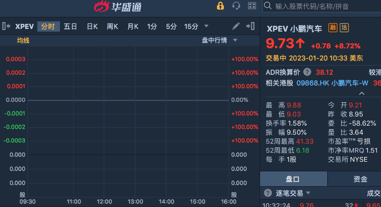 华盛资讯1月20日消息,美股盘初,新能源汽车板块全线走高,截至发稿,小鹏汽车涨超8%,报9.73美元。理想汽车涨超5%,蔚来涨超4%,法拉第未来涨约4%,特斯拉涨超3%,Lucid涨超2%。
