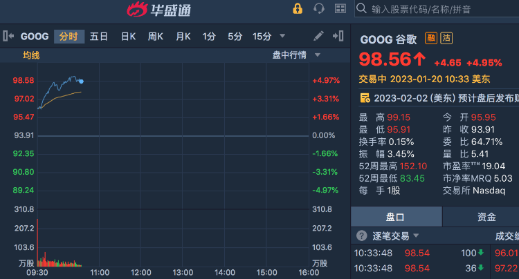 大型科技股多数上扬,截至发稿,谷歌涨近5%,报98.56美元。微软、亚马逊、英伟达涨超1%。