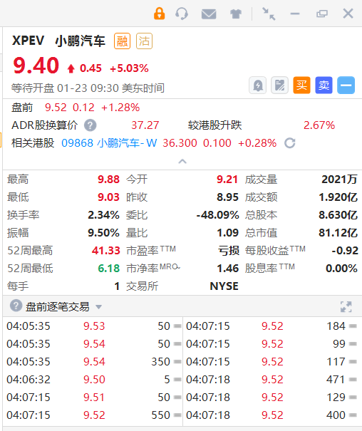 多只热门中概股盘前上涨,小鹏汽车涨1.28%,途牛、爱奇艺涨超1%,蔚来、哔哩哔哩、京东、台积电、理想汽车、阿里巴巴等跟涨。