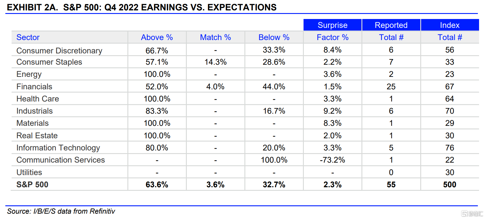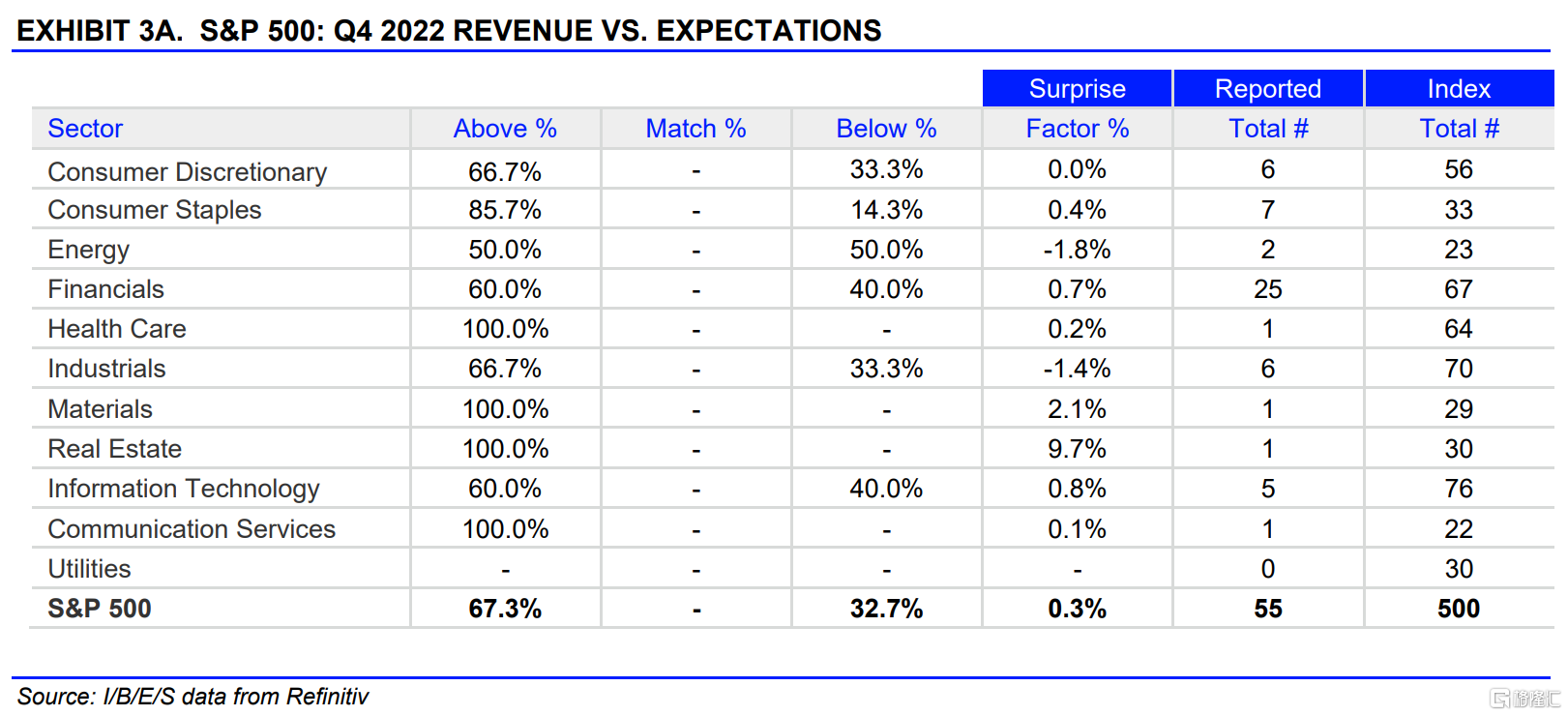 据Refinitiv,截至1月20日,已有55家标普500成分公司发布了第四季度业绩,其中63.6%的公司利润超市场预期(上周为72.4%),超预期的平均幅度为2.3%(上周为6.6%);67.3%的公司营收超市场预期,超预期的平均幅度为0.3%。