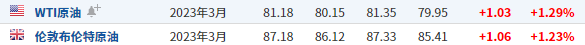 3. 截至发稿,WTI原油涨1.29%,报81.18美元/桶。布伦特原油涨1.23%,报87.18美元/桶。