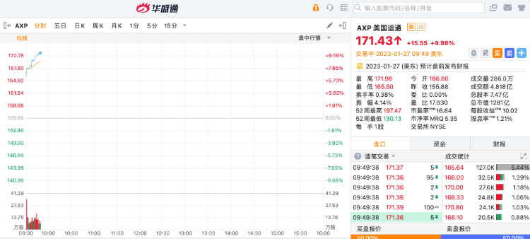 美国运通涨近10%,2022年Q4营收同比增长17%至141.76亿美元,公司预计2023年每股盈利11-11.4美元,好于市场预期的10.43美元。