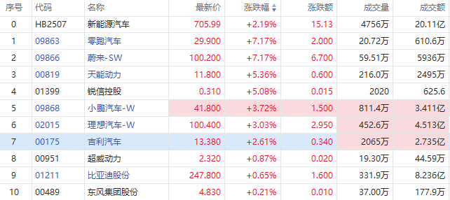 华盛资讯1月30日讯,港股汽车股逆势高开,盘初持续走高,蔚来-SW、零跑汽车现涨超7%,小鹏汽车-W、理想汽车-W涨超3%,吉利汽车涨超2%。