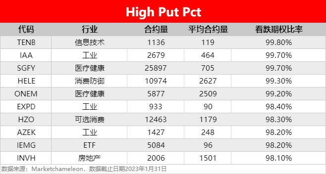注:High Call Pct/High Put Pct 是指相关期权标的当前看涨/看跌比例大小,该比值越高意味着该期权标的看涨/看跌的合约占比越高。
