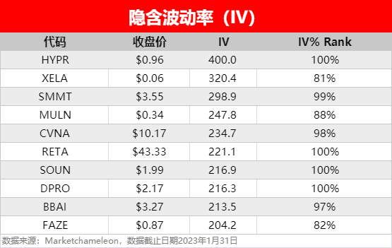 陷入破产传闻的二手车零售商Carvana $CVNA 隐含波动率持续位于高位,达到234.7,前值216.9。该股在本周一有超过26.6万份看涨合约易手,为历史第二高水平,是过去20天平均交易量的三倍多。Carvana在1月累计上涨超114%,实现股价翻倍。