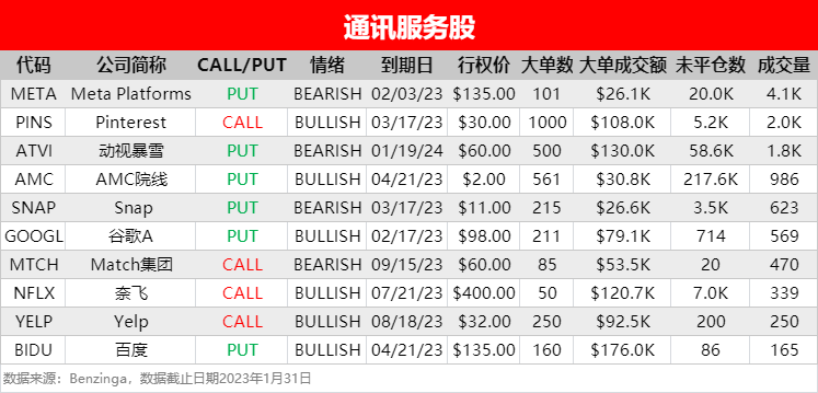 当日榜单TOP :Meta Platforms、Pinterest、动视暴雪、AMC院线、Snap、谷歌A、Match集团、奈飞、Yelp、百度